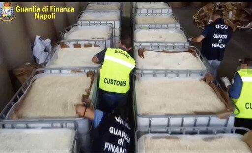 Police say they're investigating if Naples-based Camorra organized crime clans might have ordered the huge shipment for international sale, because two weeks earlier, a much smaller shipment of the drug was also seized in Salerno's port in a shipment of clothing.
