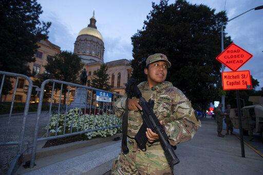 Maj. Gen. Tom Carden, who oversees the Georgia National Guard, told The Atlanta Journal-Constitution that troops stood guard at the three sites Monday night and will return Tuesday night. He said the first night was peaceful.