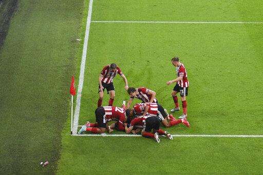 SHEFFIELD, England (AP) - John Egan scored deep into injury time Wednesday to give Sheffield United a 1-0 win over fellow European hopeful Wolverhampton Wanderers in the Premier League.