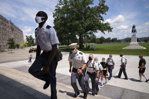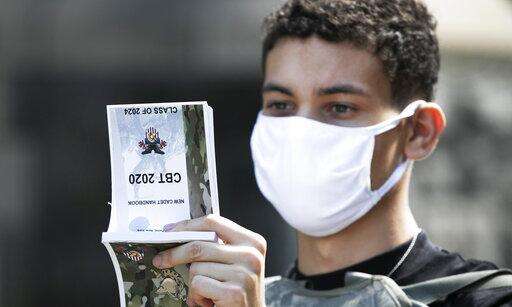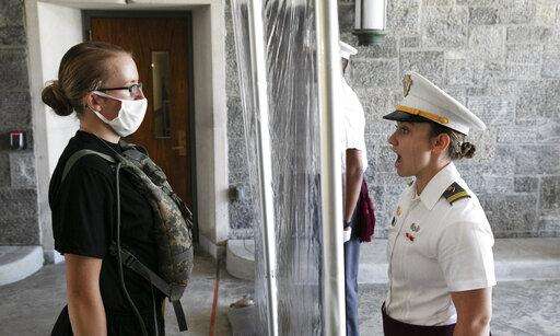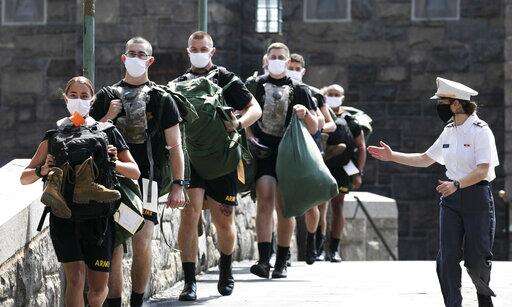 WEST POINT, N.Y. (AP) - New cadet candidates arriving at the U.S. Military Academy on Monday were promptly tested for COVID-19, stood at attention in face masks and were given shouted orders to wash their hands.