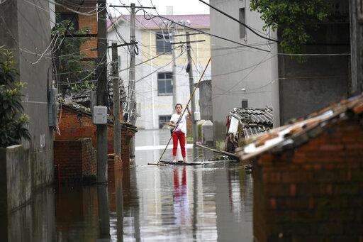 BEIJING (AP) - At least 14 people have died in the latest round of seasonal rains and flooding in southern China, as soldiers and workers built makeshift barriers with sandbags and rocks Saturday to keep the Yangtze River and its tributaries at bay.