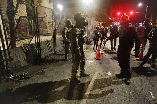 PORTLAND, Ore. (AP) - U.S. militarized officers will remain in Portland until attacks on a federal courthouse cease, a top official said Monday after another night of violence. And more officers may soon be on the way.