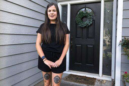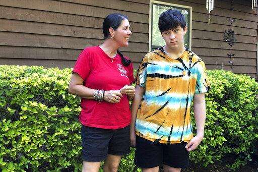 Denise Dalrymple talks about her decision to send her son back to school in person this fall as she stands outside her house, in Woodstock, Ga., Thursday, July 23, 2020. Dalrymple says she can't work and stay on top of her sons' schooling, so they will return to class in Cherokee County outside Atlanta, despite her concerns about COVID-19's spread. Cherokee County is one of many districts nationwide that gave parents a choice between in-person and all-online classes this fall. (AP Photo/Jeff Amy) The Associated Press