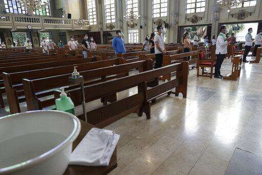 Leaders of the Philippines' dominant Roman Catholic church immediately heeded the medical community's call, saying they will return to lockdown-like restrictions by temporarily stopping actual church services in Manila and shift all Masses back online.