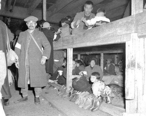 FILE - In this Dec. 16, 1945, file photo, Japanese repatriates, who had led a life of comparative ease in China during World War II, find themselves a bit crowded together in the holds of the S.S. Meiyu Maru, which is carrying them back to Japan from Shanghai. In accordance with Japanese custom of not wearing shoes in their homes, the repatriates remove them before crowding onto their wooden platforms. The bombs stopped falling 75 years ago, but it is entirely possible - crucial even, some argue - to view the region's world-beating economies, its massive cultural and political reach and its bitter trade, territory and history disputes all through a single prism: Japan's aggression in the Pacific during World War II. (AP Photo/Frank Filan, File)