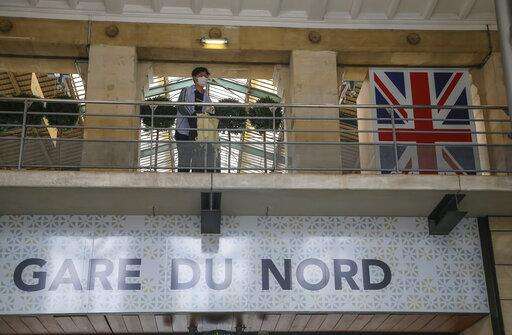 A passengers waits at Eurostar Terminal of the Gare du Nord train station in Paris, Friday, Aug. 14, 2020. British holidaymakers in France were mulling whether to return home early Friday to avoid having to self-isolate for 14 days following the U.K. government's decision to reimpose quarantine restrictions on France amid a recent pick-up in coronavirus infections. (AP Photo/Michel Euler) The Associated Press