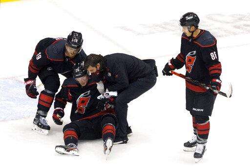 'œThat injury really looks bad and that's all that's going through my head," Carolina coach Rod Brind'Amour said.