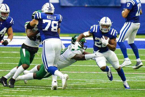 After the Jets drew a pass interference call in the end zone, Rivers found Mo Alie-Cox for a 1-yard score to break the tie. Rodrigo Blankenship extended the halftime lead to 17-7 with a 42-yard field goal. Jonathan Taylor scored on a 1-yard run on fourth-and-goal in the third quarter and Carrie's 47-yard interception return on the final play of the quarter sealed New York's fate.