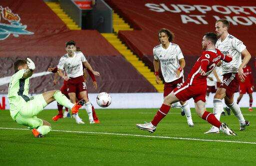 Arsenal dropped points for the first time but was threatening to beat Liverpool for a third straight month - after wins in the league in July and the Community Shield in August - when Lacazette took advantage of a rare mistake by Andrew Robertson to give the visitors a 25th-minute lead.