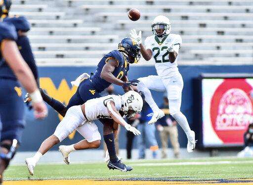 West Virginia starting left guard James Gmiter announced before the game on Twitter that he tested positive for the coronavirus. West Virginia's marching band canceled its appearance at the game after two positive cases were confirmed Friday night, the band said on its Facebook page. The band had been scheduled to perform from the stands.