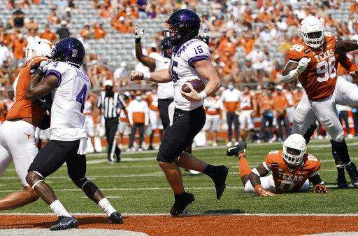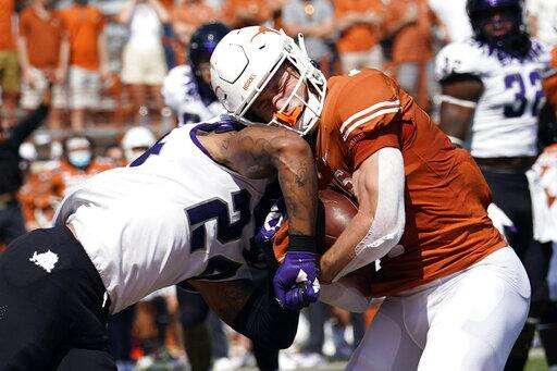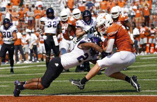 Texas looked primed for its second straight fourth-quarter comeback when Sam Ehlinger connected on a 52-yard pass to Keontay Ingram to put the Longohorns in scoring position. But Ingram fumbled on the TCU 1-yard-line with 2:32 to play.