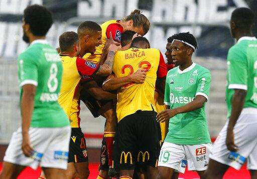 Lens moves 2nd with 2-0 win over 9-man Saint-Etienne