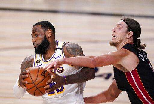 The Lakers stayed behind until early in the fourth quarter. But Miami went back ahead for good right after James' first travel and Butler wouldn't Los Angeles come back again, finishing with 40 points, 13 assists and 11 rebounds.