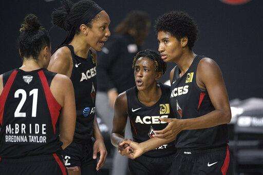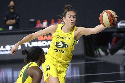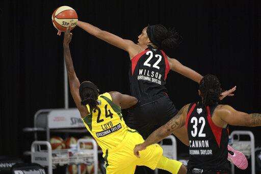LEAGUE HONORS: Wilson earned All-WNBA recognition for the first time in her young career. She was joined as a unanimous choice by Candace Parker of Los Angeles. Stewart was one vote short of being unanimous. Courtney Vandersloot of Chicago and Arike Ogunbowale of Dallas rounded out the first team. Diana Taurasi and Skylar Diggins-Smith of Phoenix headlined the second team. They were joined by Dewanna Bonner of Connecticut, Myisha Hines-Allen of Washington and Napheesa Collier of Minnesota.