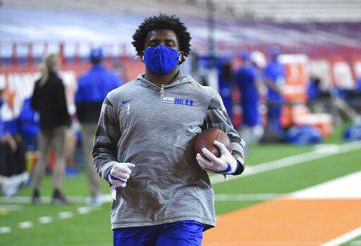 Duke: The Blue Devils finally demonstrated they can win despite the mistakes. They had just one turnover in a 38-31 loss last week to Virginia Tech but the lost fumbles and an interception against Syracuse indicate that's still a problem. The backfield tandem of Jackson and Durant creates problems for opponents.