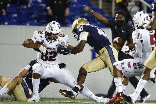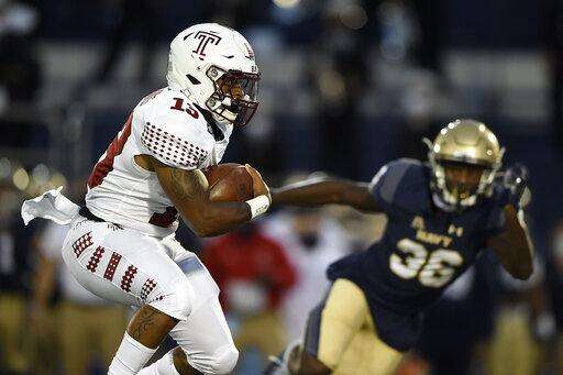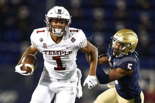 Temple's Ray Davis carries the ball against Navy during the first half of an NCAA college football game Saturday, Oct. 10, 2020, in Annapolis, Md. (AP Photo/Gail Burton) The Associated Press
