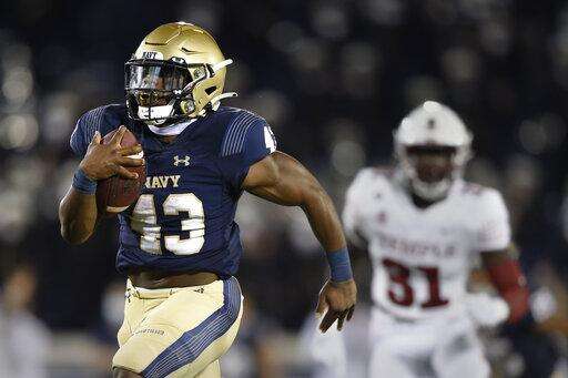 Navy's Chance Warren runs for a touchdown against Temple during the first half of an NCAA college football game Saturday, Oct. 10, 2020, in Annapolis, Md. (AP Photo/Gail Burton) The Associated Press