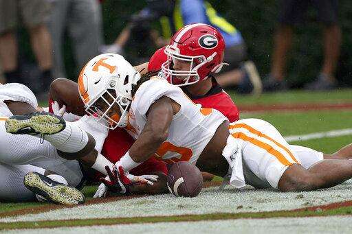Then, under heavy pressure, the Tennessee quarterback wobbled one up that was intercepted by Eric Stokes. Tennessee's defense held Georgia to a pair of field goals after those miscues, but the Vols offense just couldn't get anything going.
