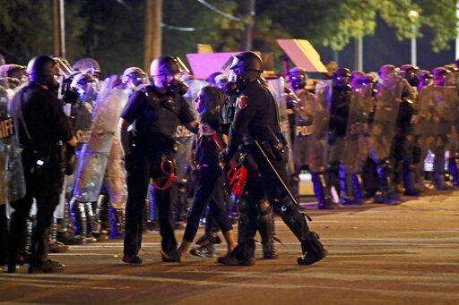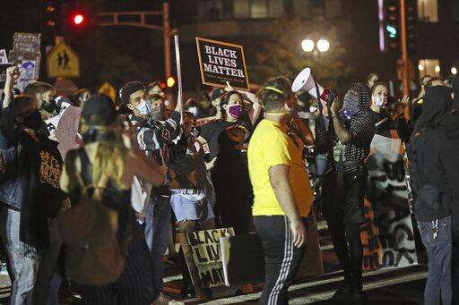 Police tweeted before 9 p.m. that the group had mostly dispersed and those who remained were being arrested. There was no immediate word on how many people were arrested or whether there were injuries. Police said earlier that law enforcement officers were hit with bottles. They also said that at one point protesters were taking trash bins from businesses and moving them into the roadway.