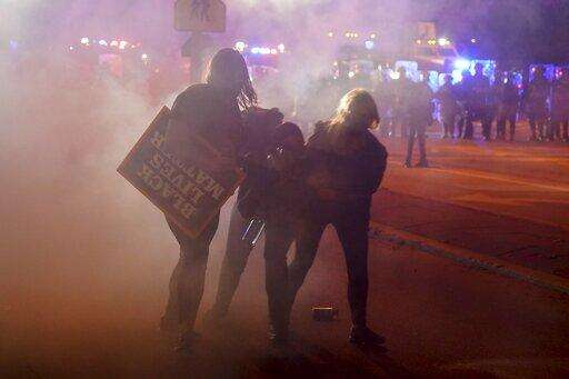 Protests broke out again Friday for the third consecutive night. More than 100 people gathered outside City Hall past the 7 p.m. curfew and refused police orders to disperse. Roughly an hour later, police lined up in riot gear and began moving toward the crowd while deploying tear gas. Video posted to Twitter by local reporters showed heavy smoke in the air as police advanced, and multiple people taken into custody.
