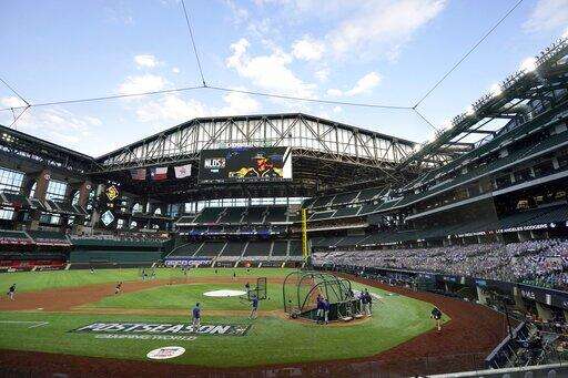 Baseball's postseason gets a full day off from games before the AL Championship Series opens Sunday. In the meantime, the Rangers and MLB are preparing Globe Life Field in Arlington, Texas, to host baseball's first in-person fans of this virus-altered season Monday.