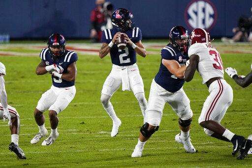 Matt Corral passed for 365 yards for Ole Miss (1-2) and the Rebels put up 647 yards on the Tide. The teams combined for an SEC-record 1,370 yards.