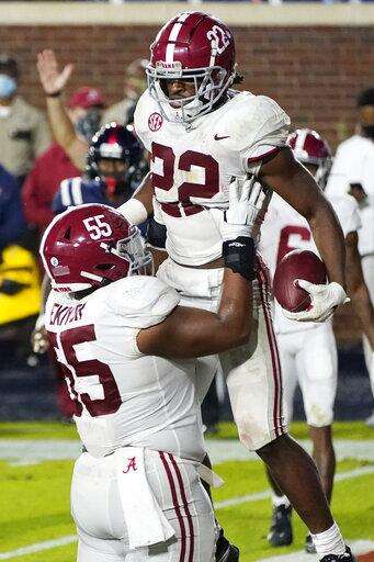 Najee Harris ran for 206 yards and five touchdowns and No. 2 Alabama beat Ole Miss 63-48 on Saturday night in the highest-scoring Southeastern Conference regulation game ever.