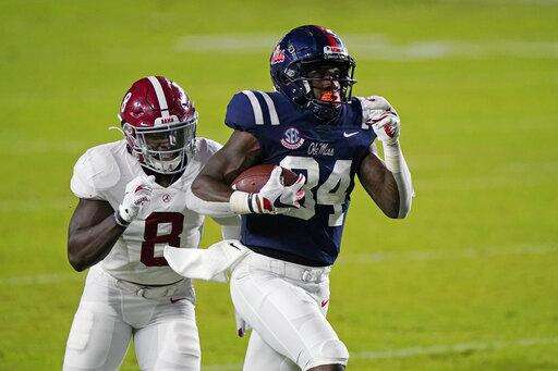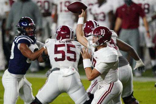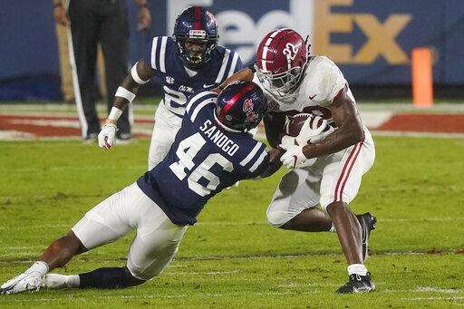 Alabama and Ole Miss traded touchdowns for much of the night, but with the Tide (3-0) leading 49-42 the Rebels misfired in Alabama territory and had to settle for a field goal. That was as good as a stop in this game. Tide receiver DeVonta Smith went 14 yards for a touchdown run to make it 56-45 with 3:16 left.