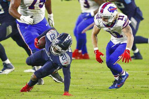 Titans left tackle Taylor Lewan had been questionable with a shoulder injury, and he went to the sideline late in the second quarter after Bills tackle Harrison Phillips landed on him. Lewan went immediately to the sideline and was replaced by Ty Sambrailo, but he returned in the third. ... Rookie RB Darrynton Evans aggravated a hamstring in the second quarter. He did not return.
