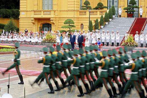 Neither of the two leaders mentioned China by name in their news conference. Phuc said the peace and stability of the South China Sea should be protected by the rule of law, not unilaterally by force or threats.