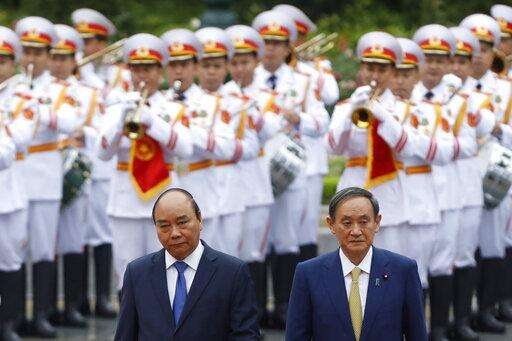 HANOI, Vietnam. (AP) - Japanese Prime Minister Yoshihide Suga, in his first overseas summit since taking office last month, agreed with his Vietnamese counterpart to step up defense and security cooperation in the face of China's expanding influence in the region.