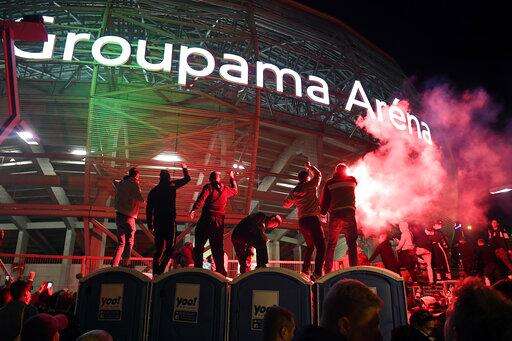 FILE - In this Tuesday, Sept. 29, 2020 file photo, fans of Ferencvaros celebrate after the soccer Champions' League playoff second leg match between Ferencvaros and Molde FK outside Groupama Arena, in Budapest, Budapest, Hungary. Hungarian champions Ferencvaros return this week to European soccer's biggest stage after a 25-year gap looking to revive a proud history. Ferencvaros beat Juventus in a European final in the 1960s and its star player then won the Ballon d'Or as the continent's best. (Tamas Kovacs/MTI via AP, file) The Associated Press