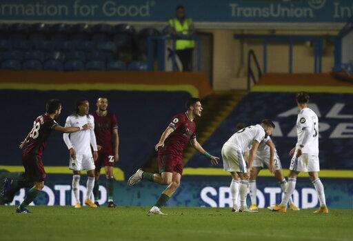 LEEDS, England (AP) - Raul Jimenez scored with a deflected effort in the 70th minute as Wolverhampton beat Leeds 1-0 to move into sixth place in the English Premier League on Monday.