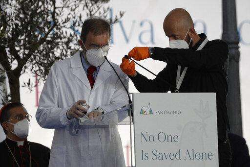 For weeks, Francis has shunned facemasks in his public and private audiences despite a surge in COVID-19 cases across Italy and even inside Vatican City. But he donned one throughout the prayer service Tuesday, removing it only to speak. In a sense he was only following Italian law, since facemasks must now be worn indoors and out.