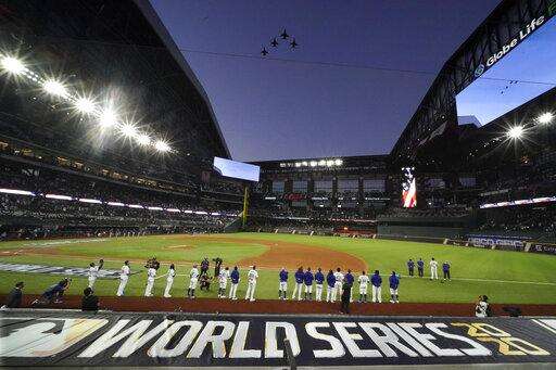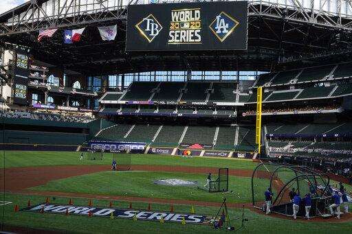 Globe Life Field has a capacity of 40,518, and Major League Baseball said it will be about 28% full during the World Series, like it was during the NL Championship Series. Fans were in socially distanced pods of four seats each, with unsold seats zip-tied together to prevent them from being used.