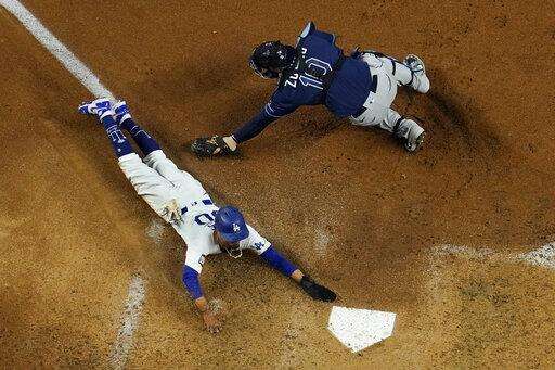 Betts and Seager took advantage of Glasnow's slow delivery to double steal while Justin Turner struck out, and Betts then scored on Max Muncy's grounder to first, diving into the plate ahead of Yandy Diaz's throw. Betts also stole second in the inning, and the Dodgers are the first Series team with three steals in an inning since the 1912 New York Giants.