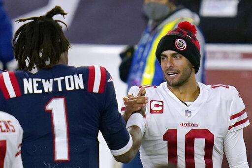 Trailing 10-3, he made a bad play worse when he tried to dump off the ball on the run to receiver Jakobi Meyers. It was intercepted by linebacker Fred Warner. Five plays later, the 49ers capitalized with a 4-yard touchdown run by Kyle Juszczyk.