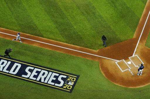 Tampa Bay has been more reliant on the long ball than most. The AL East champions became the first team to homer in four consecutive innings of a postseason game during a thrilling 8-7 comeback win over the Los Angeles Dodgers on Saturday night that tied the Series at two games apiece. Brandon Lowe's three-run homer off Pedro Baez gave the Rays a 5-4 lead in the sixth, and Kevin Kiermaier tied it at 6 with a home run against Baez in the seventh.