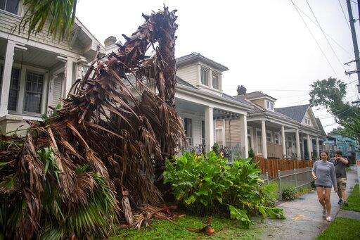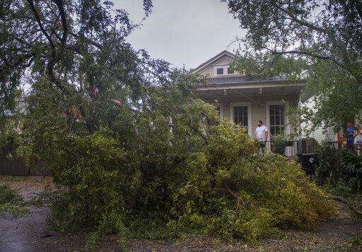 At one New Orleans intersection, a 70-foot-tall (20-meter) tree split in fierce winds, taking down utility lines and sparking a brief but bright orange flash. Video on local television showed the branches on palm trees on the city's Canal Street blowing furiously in the wind and oak trees shaking elsewhere from the pounding.