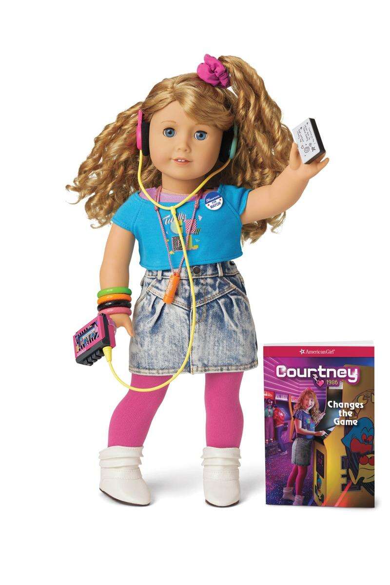 Courtney is the new American Girl historical doll, and in case the scrunchie doesn't make it obvious, she is from the 1980s. She loves music videos and the arcade game Pac-Man. She comes with a denim skirt, a bright-blue crop top and, of course, her own story.