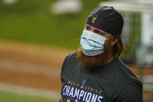 ARLINGTON, Texas (AP) - Justin Turner violated coronavirus protocols when he celebrated with his Los Angeles Dodgers teammates and he refused instructions from security to leave the field, behavior that Major League Baseball said risked the safety of others.