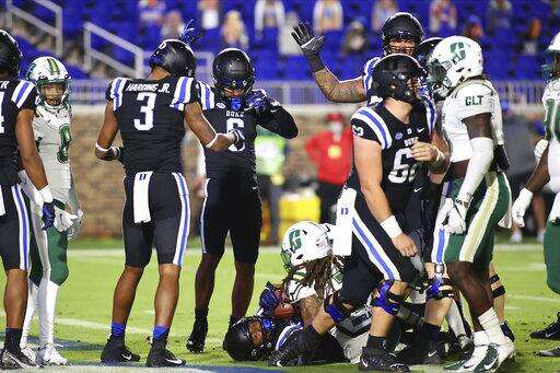 Duke's Isaiah Fisher-Smith blocked two punts that set up quick scoring possessions for the Blue Devils (2-5), who won for the first time in three home games this season.