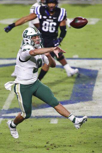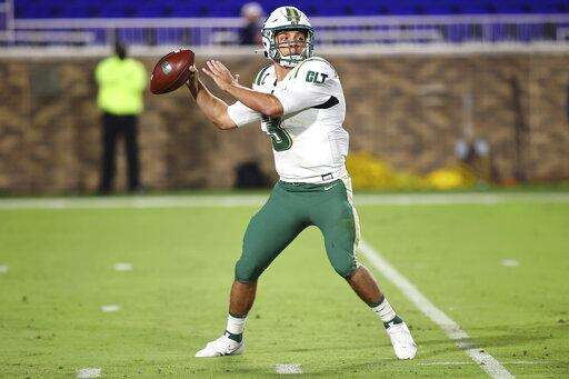 Charlotte quarterback Chris Reynolds (3) passes the football during the first half against Duke in an NCAA college football game Saturday, Oct. 31, 2020, in Durham, N.C. (Jaylynn Nash/Pool Photo via AP) The Associated Press