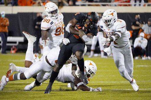 Oklahoma State drove into Texas territory late in the first half with a 24-17 lead, but Ossai stripped him and Texas defensive tackle Ta'Quon Graham recovered and returned the ball to the Oklahoma State 20. The Longhorns got just a field goal out of it, and Oklahoma State took a 24-20 lead into the break.