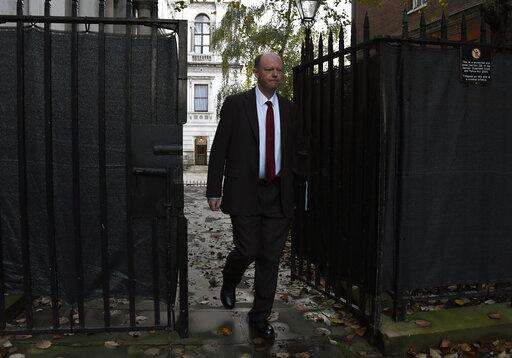 Chief Medical Officer Professor Chris Whitty arrives at 10 Downing Street, before Britain's Prime Minister Boris Johnson's speaks press conference, London, Saturday, Oct. 31, 2020. (AP Photo/Alberto Pezzali, pool) The Associated Press