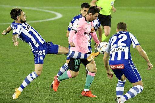 Barcelona surged forward looking for a winner, but Alaves 'keeper Fernando Pacheco kept out shots from Lionel Messi, Ansu Fati and Miralem Pjanic to salvage the point.
