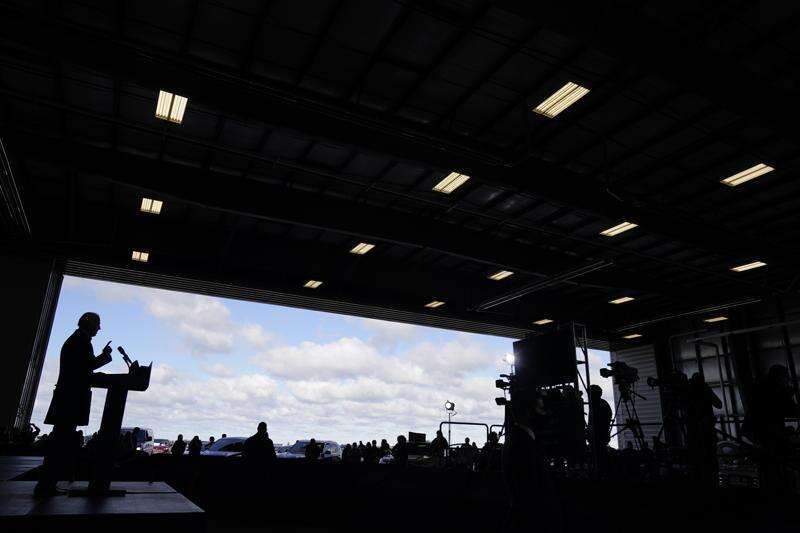 Democratic presidential candidate former Vice President Joe Biden walks from the podium after speaking in a hanger at General Mitchell International Airport, Friday, Oct. 30, 2020, in Milwaukee.