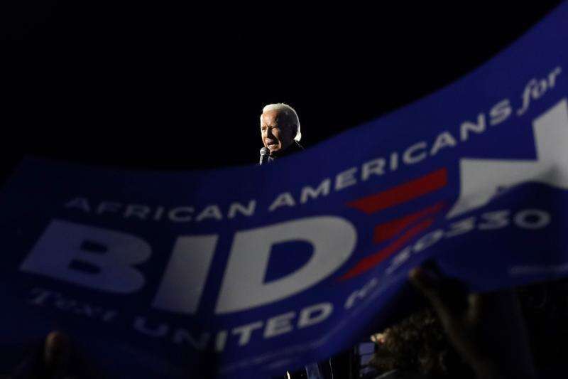 Democratic presidential candidate former Vice President Joe Biden speaks at a “Souls to the Polls” drive-in rally at Sharon Baptist Church, Sunday, Nov. 1, 2020, in Philadelphia.