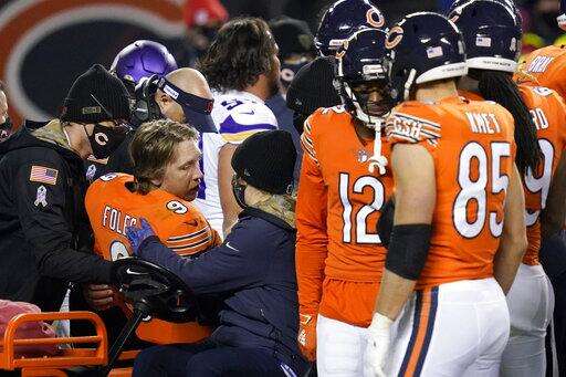 Foles completed 15 of 26 passes for only 106 yards and was sacked twice Monday night as the Bears lost for the fourth straight time after they started with a 5-1 record. The Vikings had 11 hits on quarterbacks in the game.
