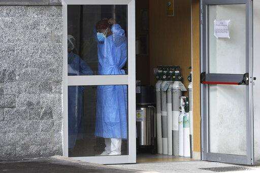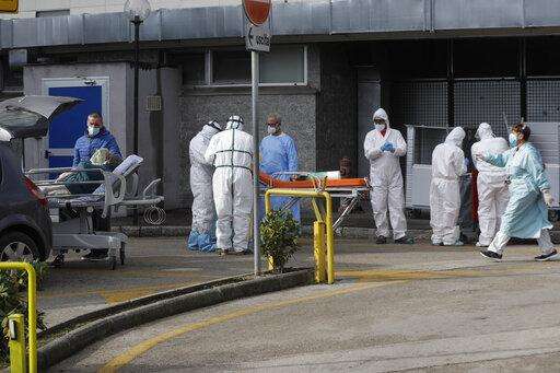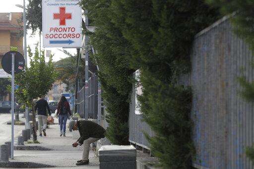 In another surreptitiously filmed scene, 15 kilometers (9 miles) away in Naples, an elderly man suspected of having COVID-19 takes his last, labored breaths in a bathroom at the emergency room of Cardarelli Hospital, his undignified end memorialized on a phone camera by a fellow patient and posted online.